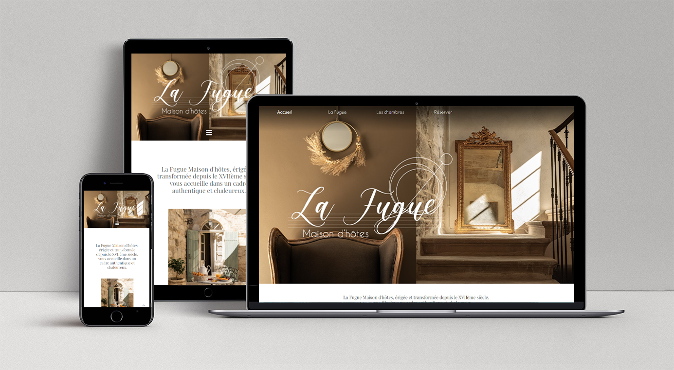 L’identité visuelle s’inspire de l’histoire du château, de la décoration soignée et chaleureuse ainsi que de la signification de La Fugue.